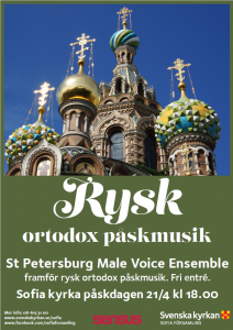21 Апр2019 21 апреля 2019 Пасхальный концерт (Sofia kyrka) FacebookTwitterLinkedinVKTumblremail21 апреля в 18.00 в церкви Sofia kyrka состоится пасхальный концерт мужского квинтета из Санкт-Петербурга. Вход бесплатный. Добро пожаловать! Post Author: admin