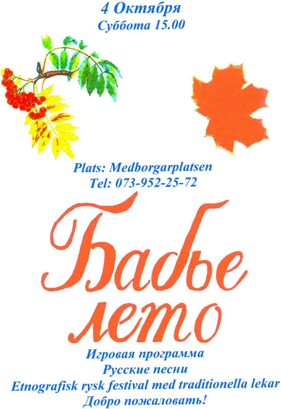 Прошел Фестиваль "Бабье лето" в Стокгольме.Объявление о празднике.