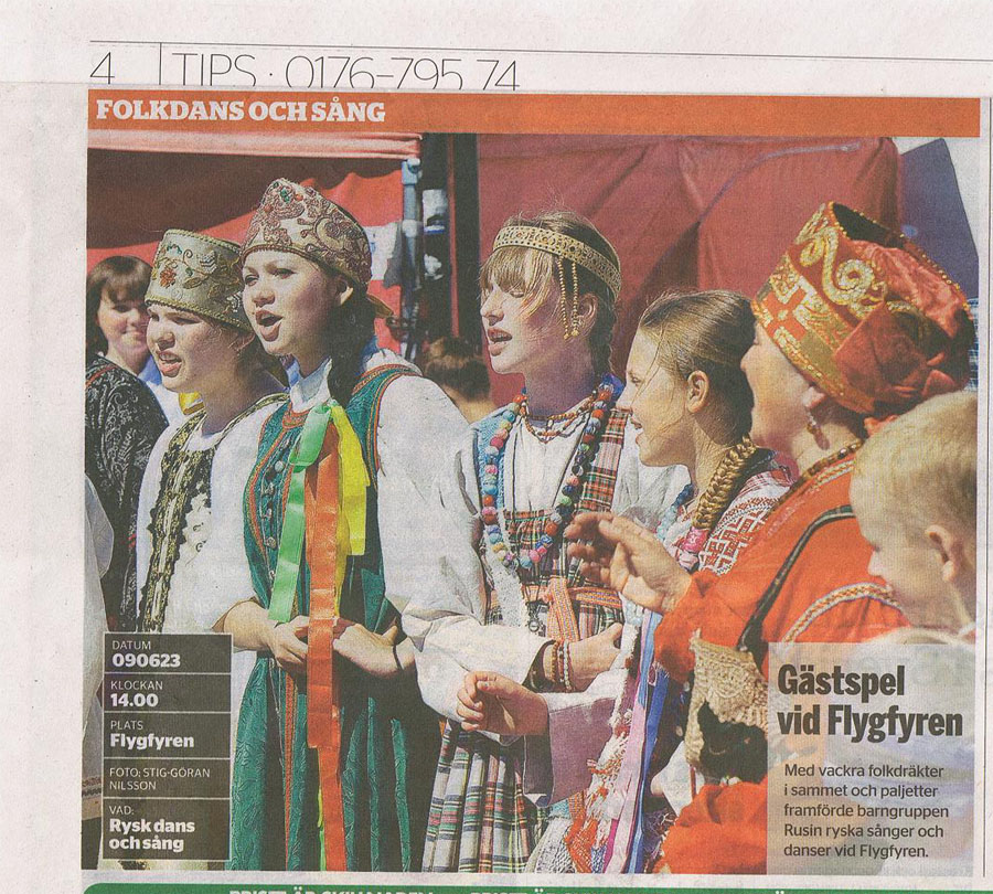 В газете “Нортэлье тиднинг“ 24 июня 2009 года на 4 странице помещена фотография выступления народного коллектива из Пскова.