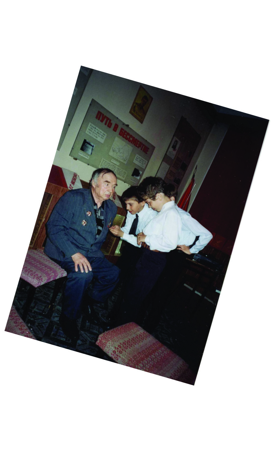 Своими воспоминаниями он часто делился с ребятами. Я вижу его на фотографии в школьном музее.