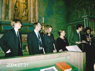 31 juli 2004 kl 14.00 sjong ensemblen "Blagovest" från Helsingfors i Röda Korsets sjukhuskapell, Brunellv. 2, T-Tekniska Högskolan till Drottning Kristina?s väg. Pä repertuaren ortodoxa kyrkosänger pä kyrkoslaviska med rysk musik. Fader Vär av Chaikovskij, Konsert N 15 av Bortnjanskij, Kerub-ängels melodi (georgiens sängart och slavisk sängart), konsert N 32 (Psalm 39) av Bortnjanskij, Bön till Apostel Johannes (kloster Valamos melodi), "Adam sitter mittemot Edem..." (kloster Valamos melodi), "Miserere" A.Lotti, "Vintervägen" av Shebalin (Pushkin?s dikter), "älv Anchar" av Arenskij (Pushkin?s dikter).