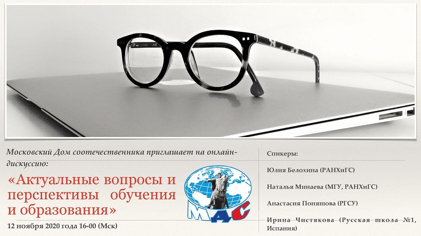 12 ноября Московский Дом соотечественника (МДС) провел онлайн-дискуссию «Актуальные вопросы и перспективы обучения и образования».