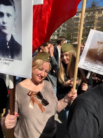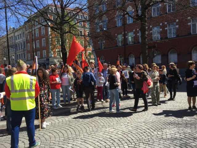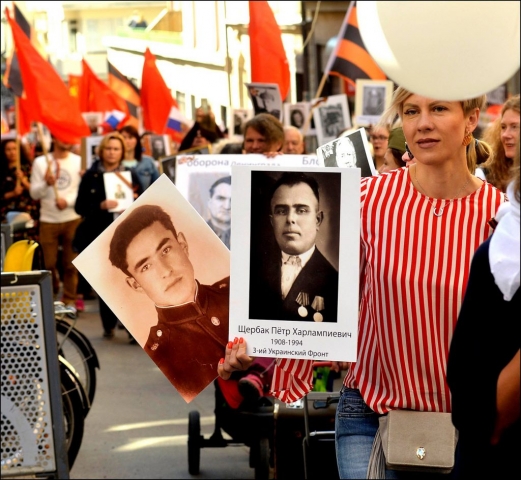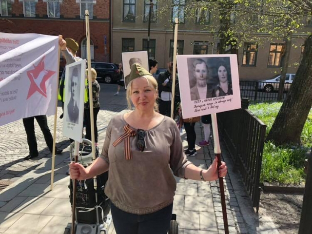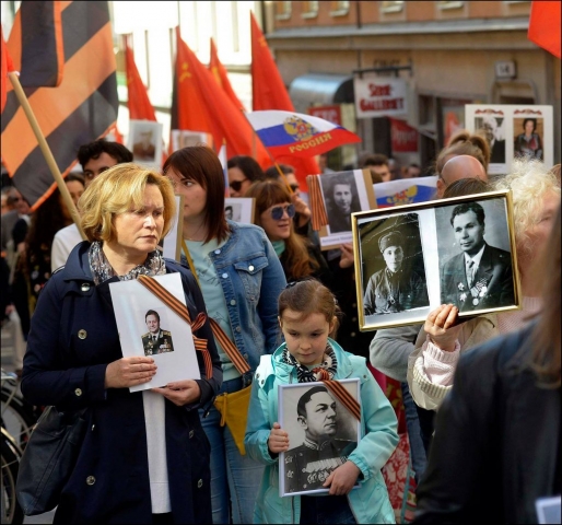 Jenia. Idag i Stockholm pågick en demonstration för att hedra Andra världs krigets soldater, partisaner och de civila som hjälpte på hemmaplan. Det är en stor minnesdag som de senaste åren spred sig både i Ryssland och i Europa. Det odödliga regementet. Krigets offer och kämpare. Ingen av er kommer bli glömd. Denna dag har en stor betydelse med den stora krigshetsen i Europa. Vi vill inte ha krig igen. Foto nere Jenia Palin.