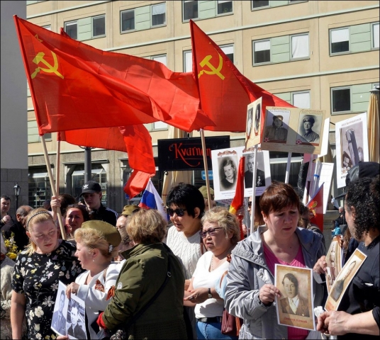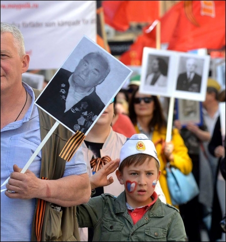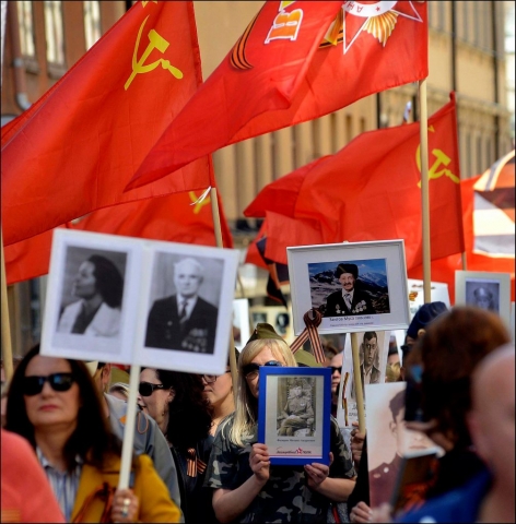 Lasse. Idag marscherade “Det odödliga regementet” från Mariatorget i Stockholm till Medborgarplatsen där det hölls tal och man sjöng sånger från tiden för det Stora fosterländska kriget.