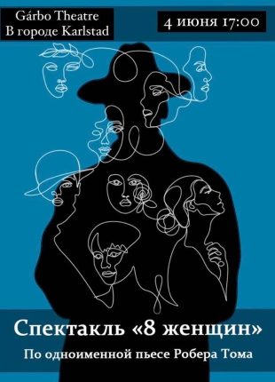 Театр “Грета Гарбо” под руководством Евгении Пономаревой (Стокгольм) представляет постановку “8 женщин” по пьесе Робера Тома в Карлстаде 4 июня в помещении народного театра Folkteatern Järnet (Verkstadsgatan 1, Karlstad). Начало в 17 часов. Билеты уже в продаже тут https://billetto.se/e/8-biljetter-629238 . Спектакль на русском языке. В сотрудничестве с обществом “Мы говорим по-русски”. Добро пожаловать!