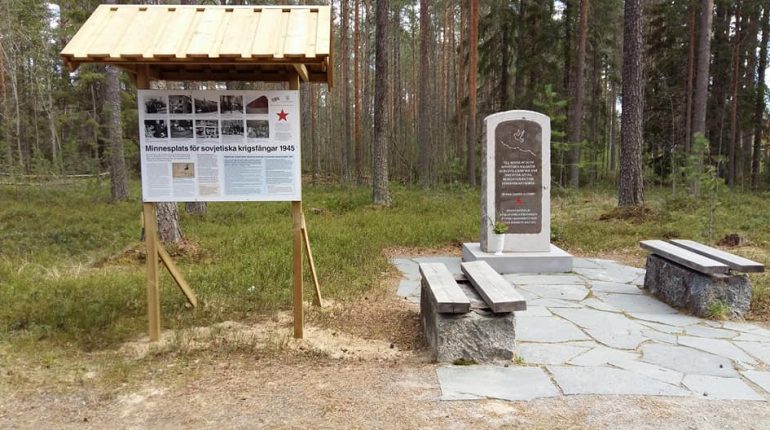 Informationstavlan är på plats vid minnesstenen över ryska krigsfångar i Luleå