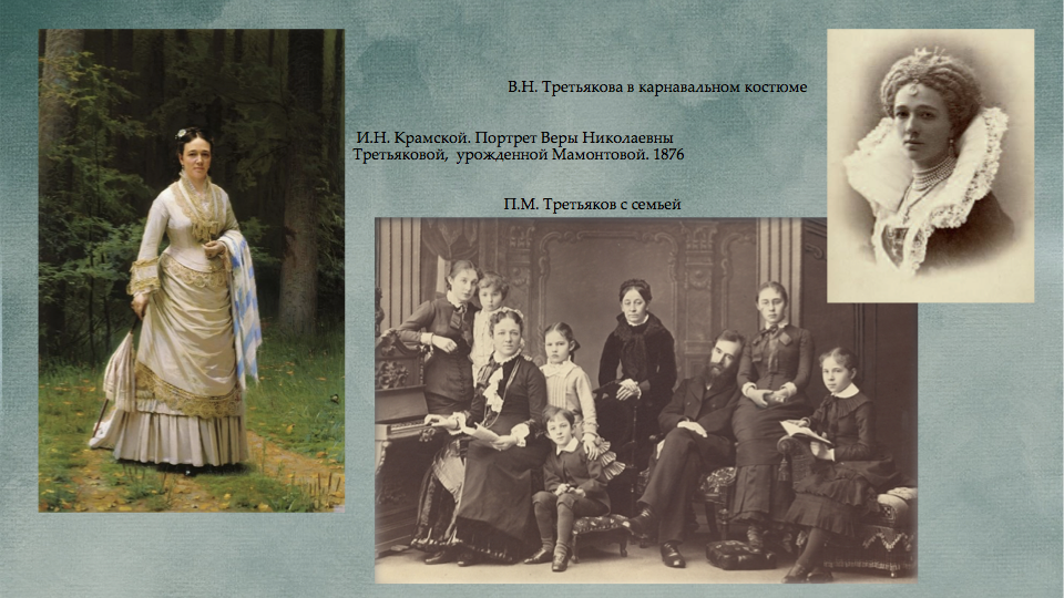 Третьяков, как и все купцы, хотел, чтобы его дочери вышли замуж за предпринимателей; но, поскольку в гостях у Третьяковых бывали главным образом художники и музыканты, именно они стали мужьями девушек.
