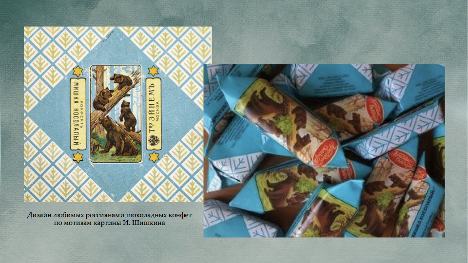 Картина с самого своего появления так полюбилась зрителям, что одна из российских кондитерских фабрик еще в XIX веке заключила договор с художником на право использования его картины для дизайна шоколадных конфет. Это очень вкусные шоколадные конфеты, которые до сих пор выпускаются в России.