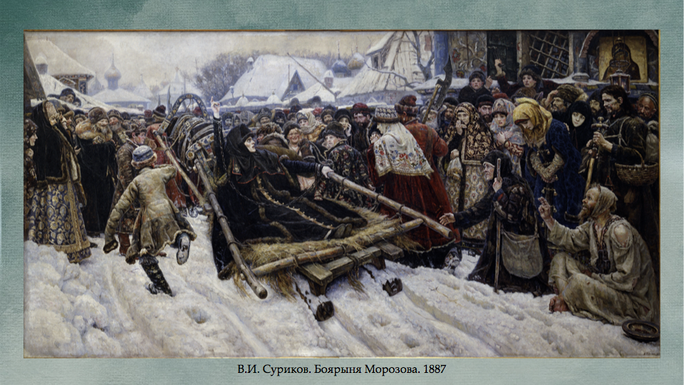 Одна из самых знаменитых картин Третьяковской галереи большого размера – это «Боярыня Морозова» Сурикова.