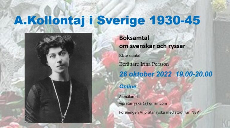 26 oktober kl.19 berättar bibliotekarien Irina Persson om böcker som handlar om Aleksandra Kollontaj och hennes arbete i Sverige under 1930-45. Gratis samtal via Zoom, be om länk vipratarryska (a) gmail.com.