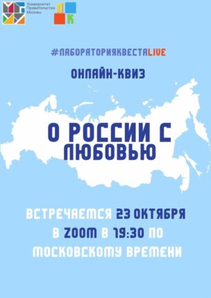Московский городской университет управления организует онлайн-квиз “О России с любовью”, который состоится 23 октября в 19:30 МСК. Это прекрасная возможность узнать больше о достопримечательных местах и истории их развития. Регистрируйтесь!