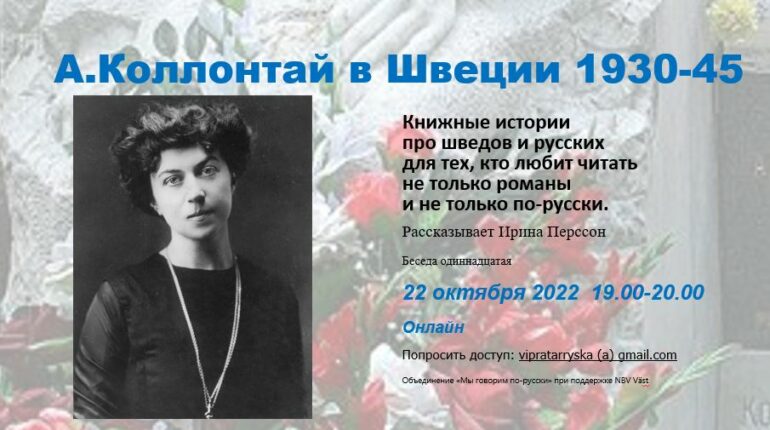 22 октября Ирина Перссон расскажет о книгах про Александру Коллонтай и про ее работу в Швеции в 1930-45 годах. Лекция бесплатно, онлайн. Попросить доступ vipratarryska (a) gmail.com. Начало в 19 часов.