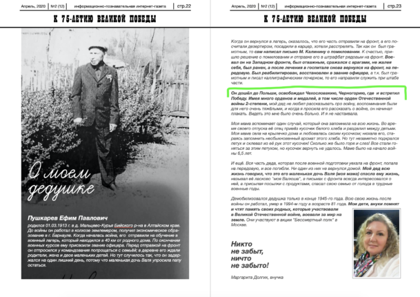 Представляем воспоминания Анвара Махкамова ✨: «Вечная память всем героям, независимо от наград, званий, национальностей, отстоявшим свободу нашей Родины и освободившим всё человечество от коричневой чумы, так как каждый участник Великой отечественной войны является настоящим ГЕРОЕМ! К сожалению, у нас нет достаточной информации о военном пути наших дедушек, но все равно очень хотелось бы о них […]