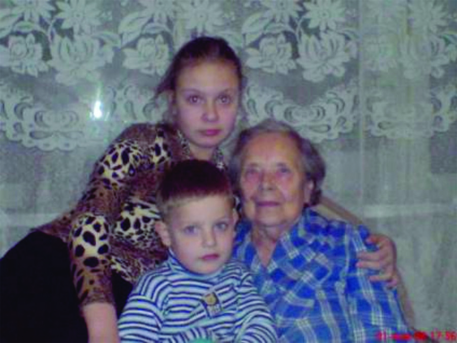 Бабуля Ефросинья Ивановна, правнуки Лиза и Никита