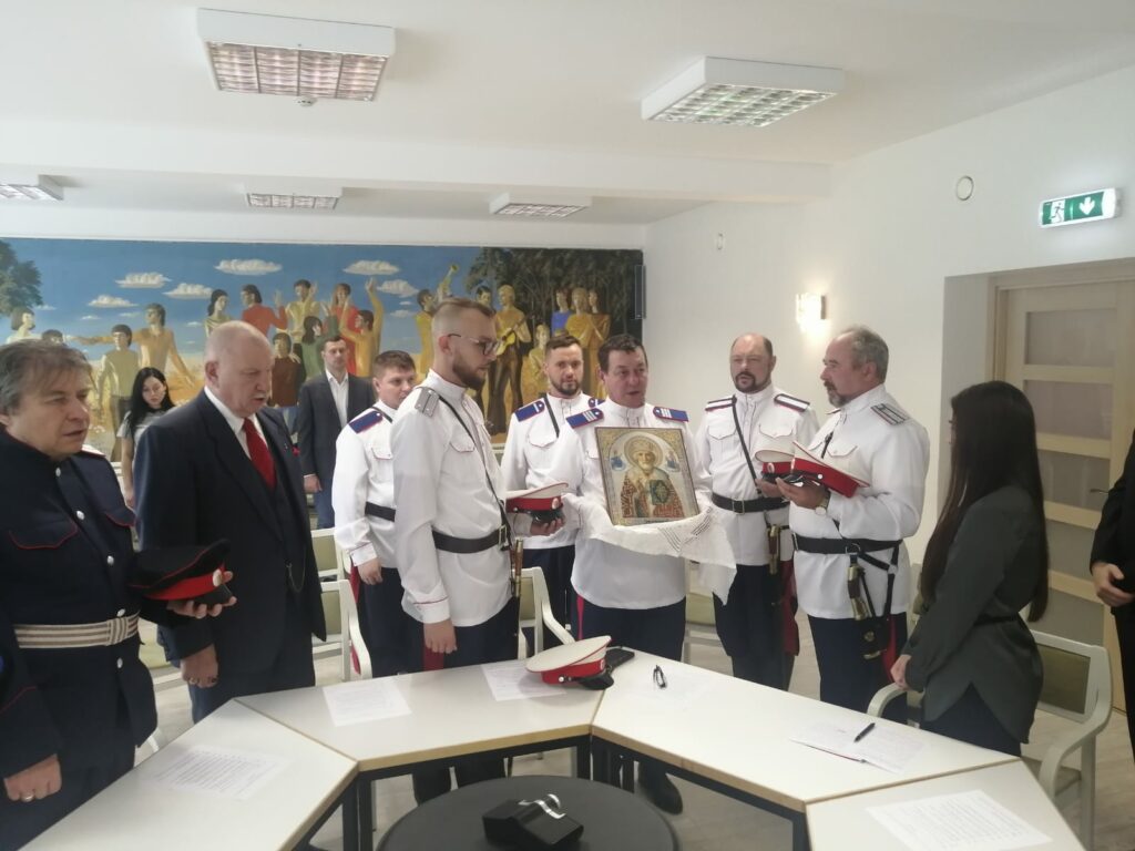 Перед началом круглого стола в исполнении казачки станицы «Никольская» Елены Корсак прозвучал романс «Генералы двенадцатого года». Настоятель Свято-Никольского прихода Хельсинки протоиерей Николай (Воскобойников) духовник станицы «Никольская» Финляндского ЮРТа отслужил молебен о святом православном воинстве, воинах и Отечестве.