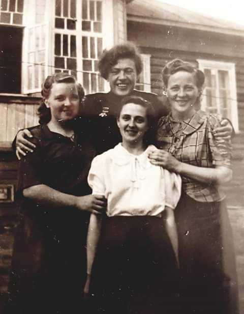 Som ett resultat är här ett underbart foto av fyra kampvänner: Nina från den sovjetiska armén och norska partisanerna Borgny, Oddny och Dagny.