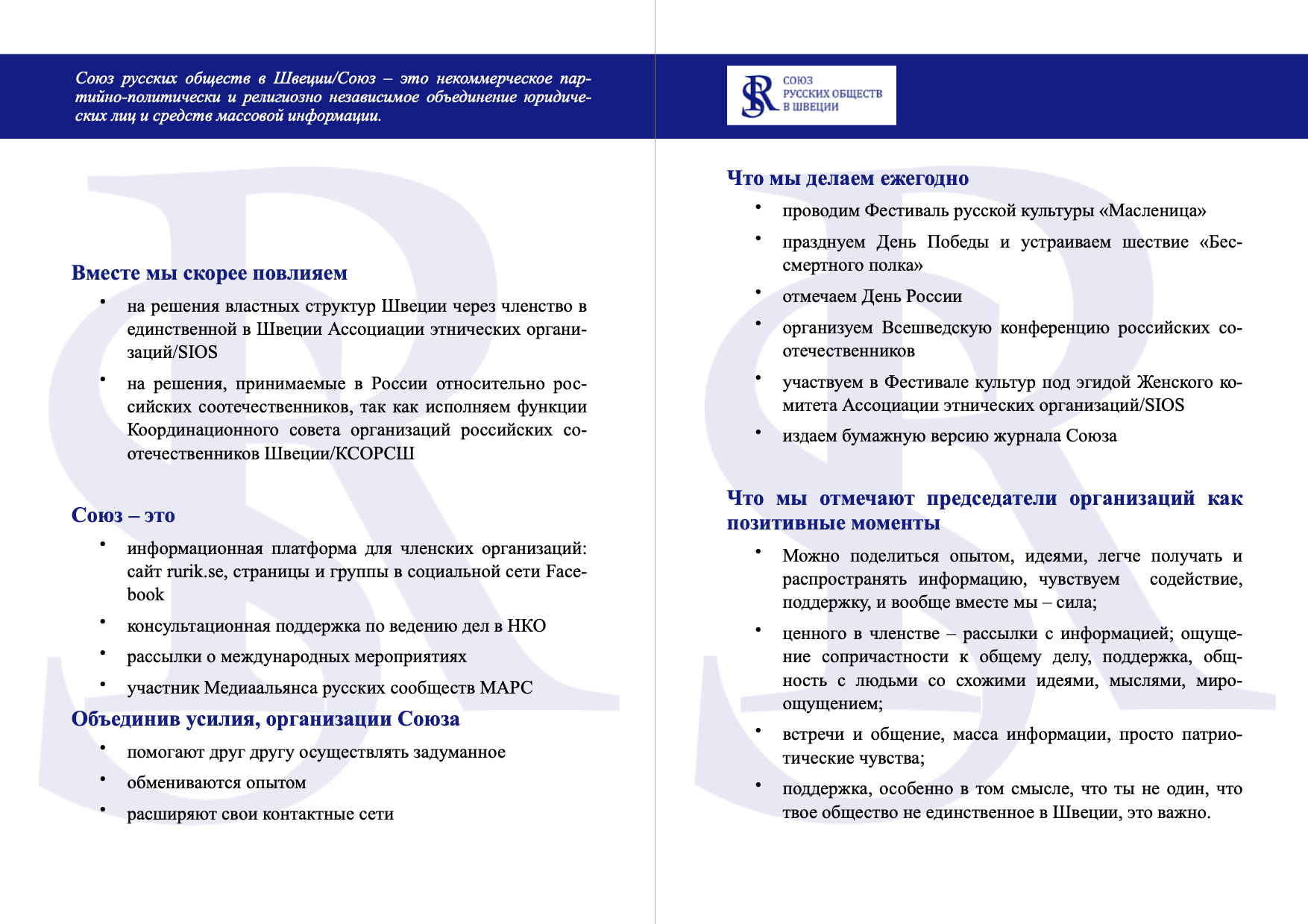 Союз русских обществ в Швеции/Союз – это