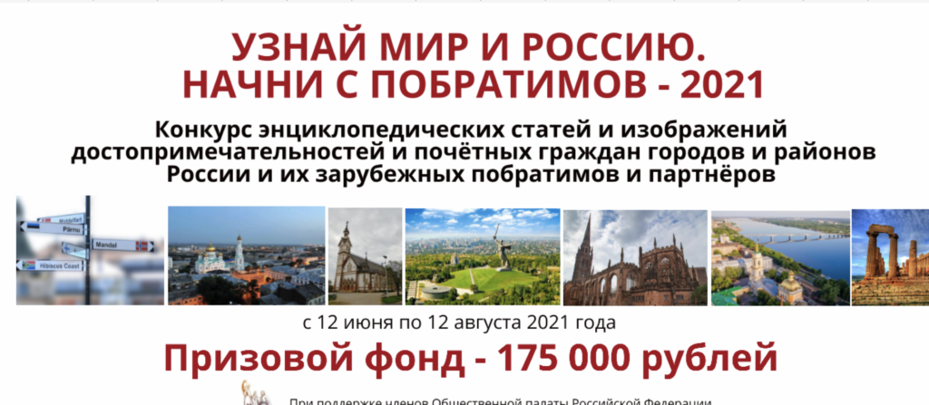 Конкурс «Узнай мир и Россию. Начни с побратимов — 2021» продолжает цикл мероприятий масштабного проекта #Узнай Россию.