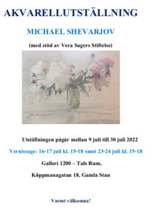 16, 17, 23, 24 июля выставка акварелей Михаила Шеварева, Стокгольм