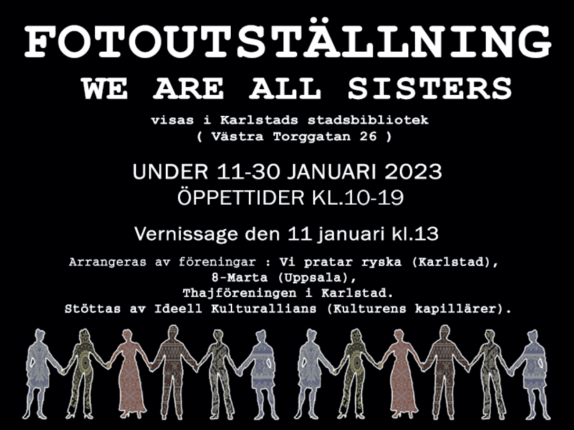 10-30 января 2023 г. в Карлстаде состоялась выставка «We are all sisters» c портретами женщин из бывшего СССР и Таиланда, живущих и работающих в Швеции. Портреты сделаны на рабочих местах женщин – школа, лаборатория, университет, аэропорт, полиция – в рабочей форме. Выставка оформлена в рамках проекта «We are all systers» или «Den andra kvinnan». Цель […]