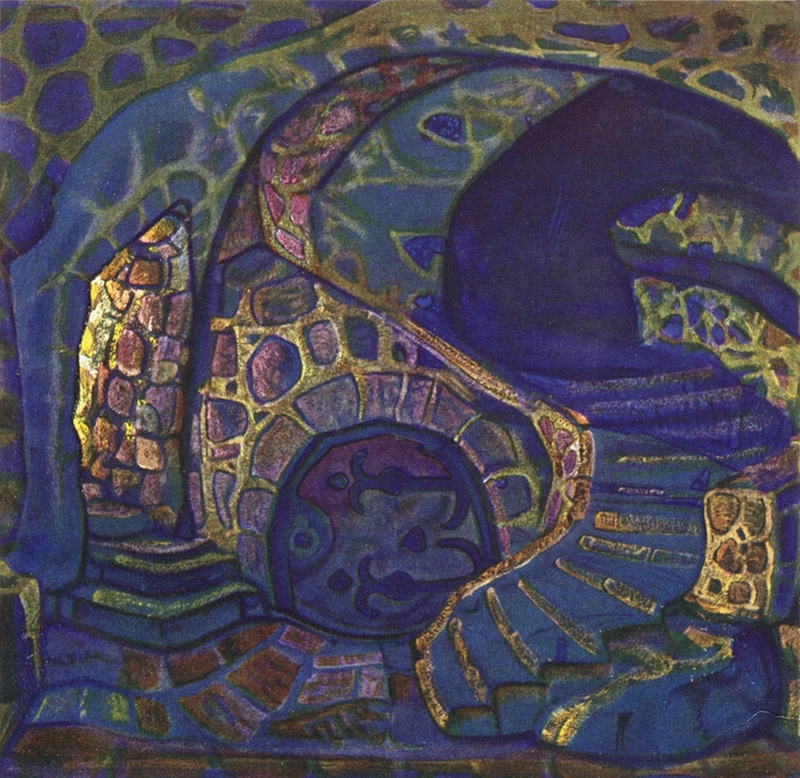 Ill. 21. Nikolaj Roerich. I underjorden. Landskapsskiss till A. Davydovs opera på handlingen i Maurice Maeterlincks pjäs “Syster Beatrice”. 1913. Pusjkinmuséet, Moskva