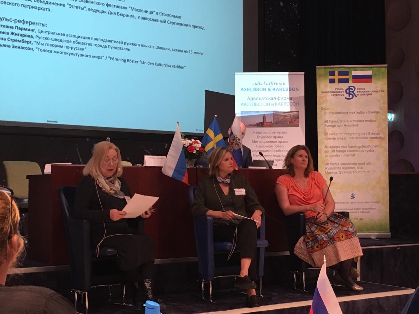 14 сентября 2019 года в Стокгольме на общешведской конференции обсуждалась роль соотечественниц в сохранении русского языка, духовных и культурных ценностей. В конференции приняли участие представители более 50 различных обществ, организаций и частных лиц.