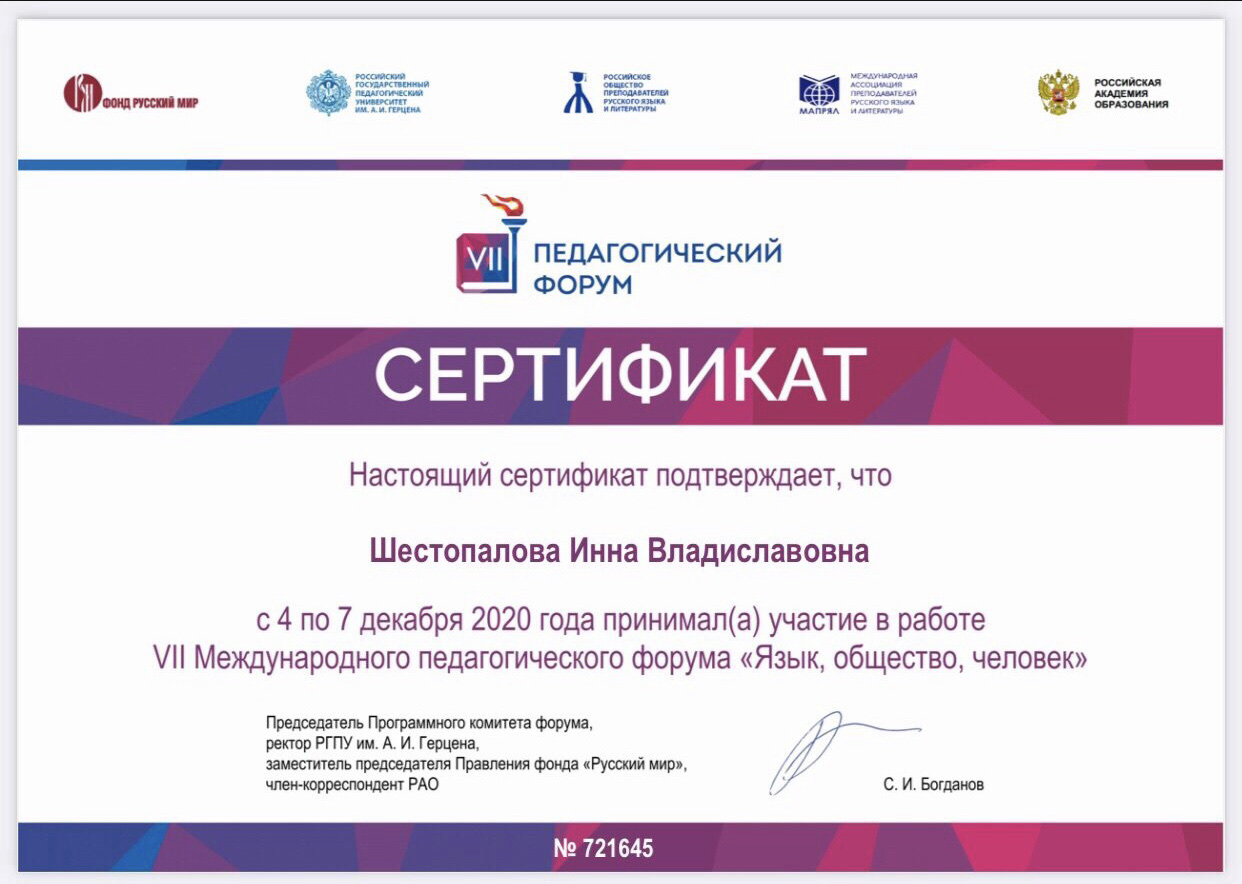 У меня появилась исключительная возможность стать участником интересных конференций и вебинаров по русскому языку, по методике преподавания, по искусству и другим направлениям.