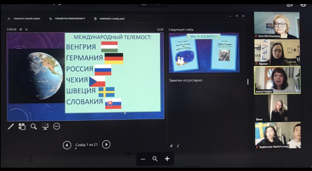 Кроме того, я была организатором нескольких телемостов при поддержке Союза русских обществ Швеции для русскоязычных детей из разных стран: «Масленица» (Швеция, Россия, Словакия, Венгрия); «День космонавтики. 50-летие со дня первого полёта в космос Юрия Гагарина» (Россия, Швеция, Чехия, Германия, Венгрия, Словакия); «День Победы 9 Мая» (Швеция, Дания).